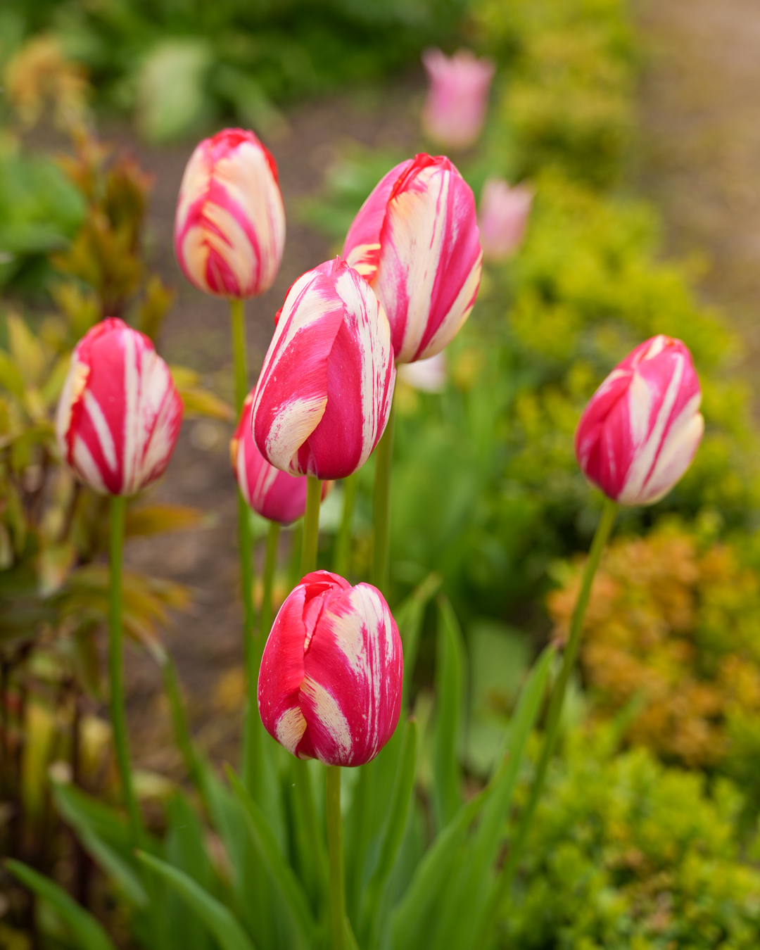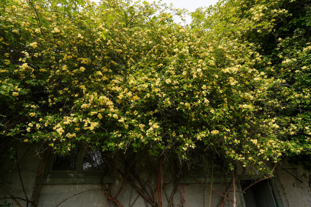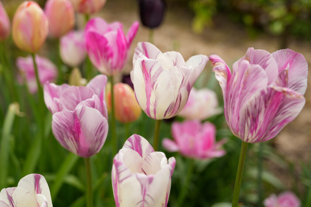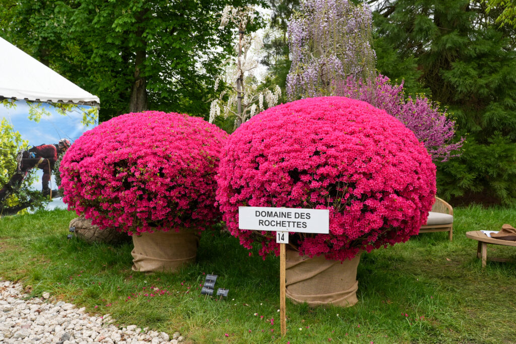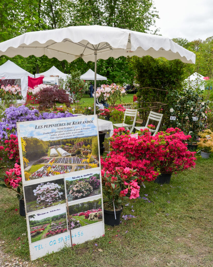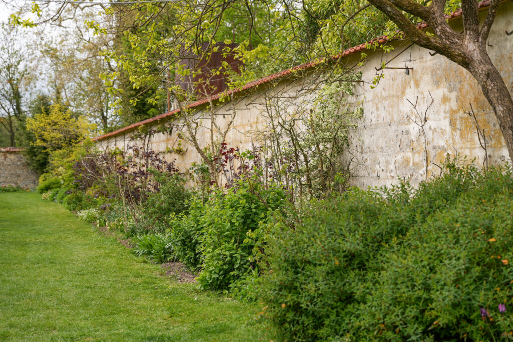 Les carrés de terre brune dominent le centre du potager tandis que les longues allées bordées de buis taillés se déploient avec une rigueur toute française, encadrées de tulipes aux pétales striées qui explosent dans toutes les nuances du rose, du corail et du blanc. Ce jardin remarquable semble vide en ce début de printemps, et pourtant, on aperçoit déjà les premières plantules qui s’éveillent à l’abri dans la serre victorienne aux vitrages blanchis. Elles sont la promesse de beaux légumes à venir. Le verger attenant est en pleine effervescence : les pommiers croulent sous leurs fleurs blanches, et certains visiteurs se sont attablés pour se reposer sous les branches, loin de la foule venue arpenter les allées du château à la recherche de plantes rares et exceptionnelles.