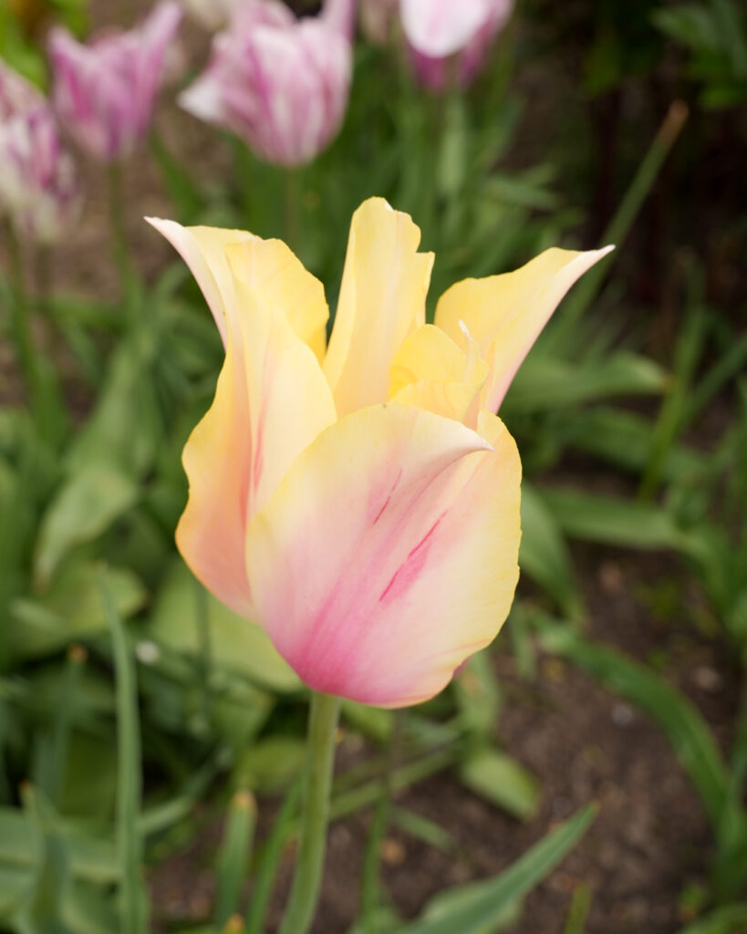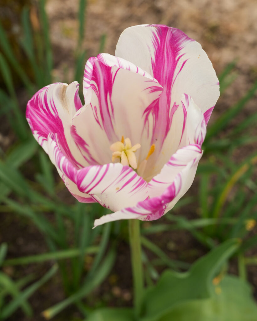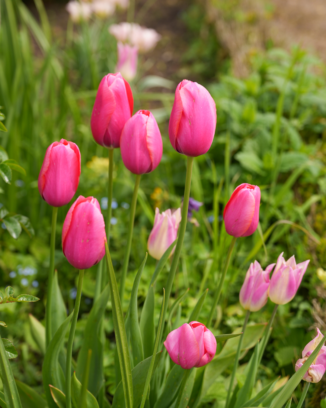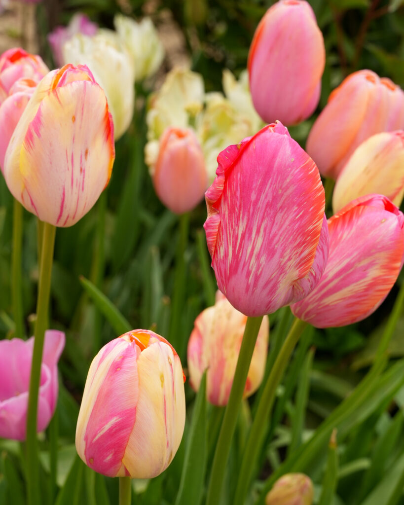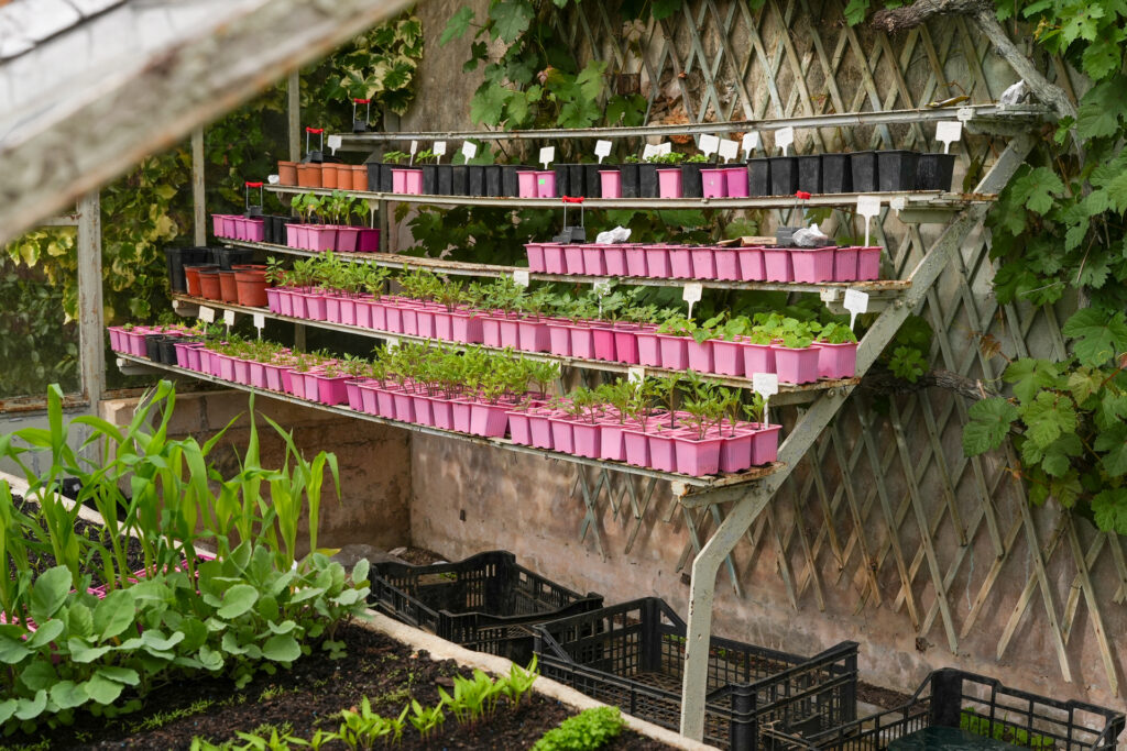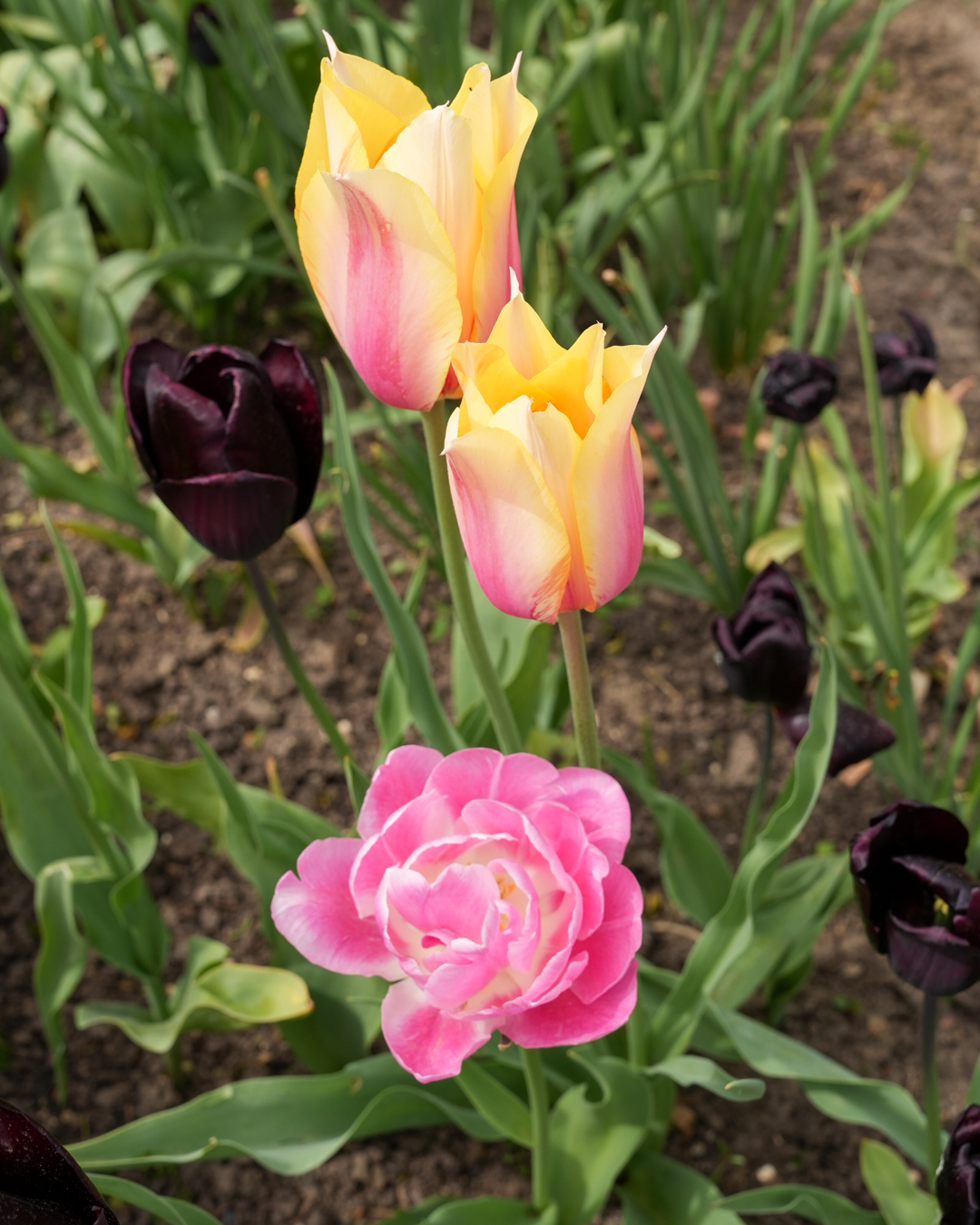 Les carrés de terre brune dominent le centre du potager tandis que les longues allées bordées de buis taillés se déploient avec une rigueur toute française, encadrées de tulipes aux pétales striées qui explosent dans toutes les nuances du rose, du corail et du blanc. Ce jardin remarquable semble vide en ce début de printemps, et pourtant, on aperçoit déjà les premières plantules qui s’éveillent à l’abri dans la serre victorienne aux vitrages blanchis. Elles sont la promesse de beaux légumes à venir. Le verger attenant est en pleine effervescence : les pommiers croulent sous leurs fleurs blanches, et certains visiteurs se sont attablés pour se reposer sous les branches, loin de la foule venue arpenter les allées du château à la recherche de plantes rares et exceptionnelles.